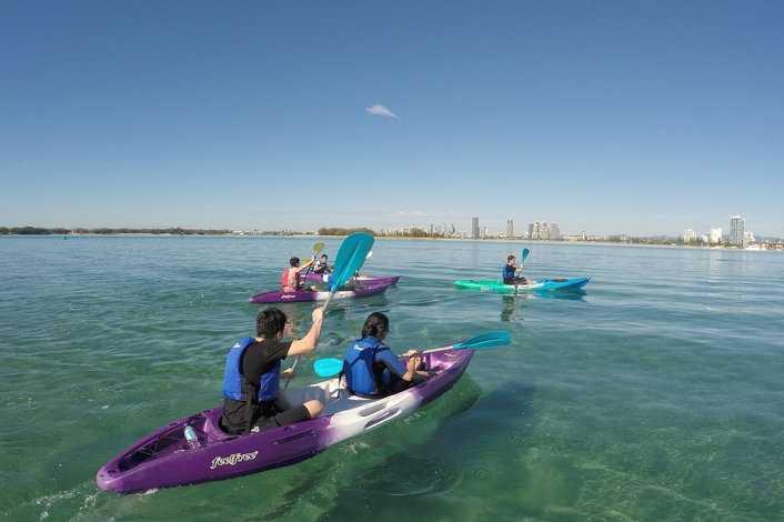 Hotel pick up and return from Surfers Paradise and Broadbeach. The tour departs from the boat ramp opposite the Grand Hotel in Labrador 10 minutes north of Surfers Paradise. Take in the beautiful scenery and get ready to kayak your way around exploring the deserted islands and surrounding areas of the Broadwater. Kayak to Wavebreak Island and enjoy a light breakfast on the beach while watching out for the local dolphins to pass on by.