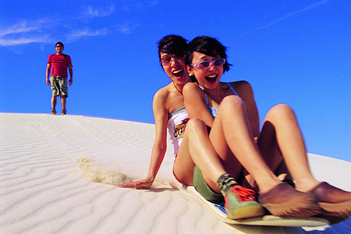 As the desert begins to cool you will travel back towards Perth via Lancelin, a delightful fishing and tourist destination nestled between a large sheltered bay and 2 kilometres of pristine white sand dunes. The towering dunes are where you'll enjoy the thrilling adventure of 4 wheel driving, zooming across the pure white crests, in view of the Indian Ocean. With the opportunity for trying your skill at sandboarding as well. If travelling in Winter, you may be lucky enough to experience the spectacular sunsets that this coastline is famous for as you head back to your original Perth pick-up point at around 7:30pm.