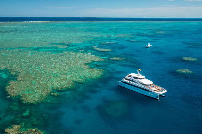 Cruise onboard our super-yacht to 2 unique outer Great Barrier Reef locations 5 hours reef time with unlimited snorkelling All snorkelling equipment & floatation devices and free lycra/sun-suit hire Hot BBQ lunch including hot meats, fish, prawns & variety of fresh salads (vegetarian options available) FREE tea, coffee and snack FREE glass of wine and snack on return journey Experienced & professional dive instructors and friendly crew Spacious air-conditioned modern lounges and stylish upper deck to relax in comfort