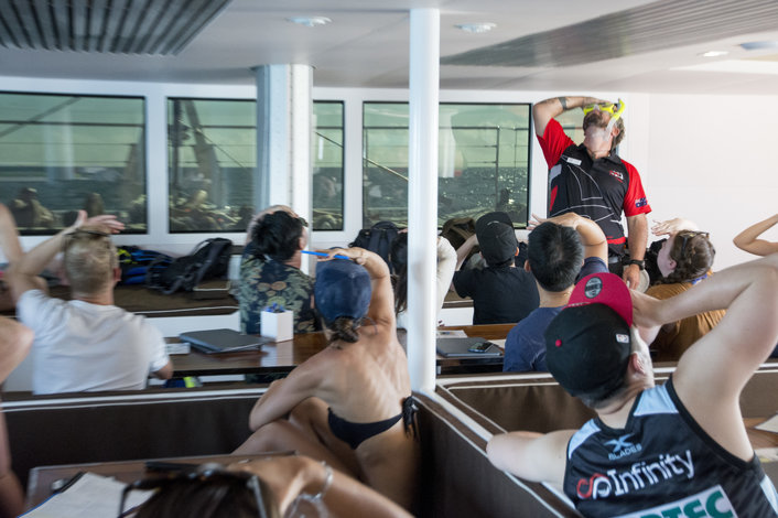 Introductory Dive - So you would like to get up close and personal with the fish and the coral like Jaques Cousteau!!! You can pre-book your first dive, or book up to 2 dives on board. Intro diving is safe, fun, easy and the best way to see the Great Barrier Reef. Our Diving Instructors are highly experienced, calm and fun to be with. NO experience is necessary, and you don’t even have to be able to swim. You will be given a full on-deck briefing, shown how the equipment works and in small groups of no more than 4 divers, be led on a Diving Instructor controlled dive. Already hold Open Water Dive Certification? You can pre-book your first dive, or book up to 2 dive whilst on board. Just bring along your dive licence. Prescription masks available for hire on board for $10. T shirts, snacks & merchandise available on board. We can offer a transfer service from your Cairns or Northern Beaches hotel. This must be pre-booked but you are required to pay for the transfer directly at check in. Transfers from City hotels $18.00 per person / from Northern Beaches hotels $25.00 per person.