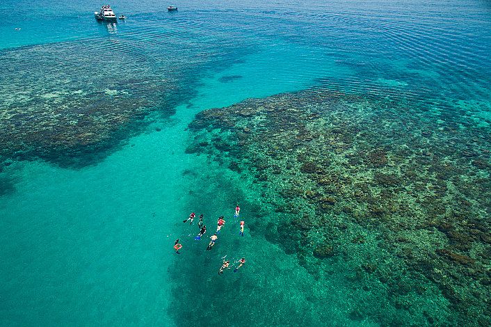 • Adventure Drift Snorkelling Tour with Marine Naturalist, • Reef Talk by Marine Interpreter, • Glass bottom Boat Tour, • Snorkelling Tuition, • Top quality Snorkelling equipment (masks, flippers, snorkel), • Buoyancy snorkel vests, • Lycra suits /or wet suits (depending on season), • 2 Reef destinations on the day including Upolu Cay Reef + Outer Edge Upolu Reef, • Prescription masks, • 6 full hours on the Reef, • Tea and coffee all day, • Fresh Fruit and Danish pastries on boarding, • Large smorgasbord lunch with seafood, • Platter tropical fruit, cheese and crackers, assorted cake served during day,