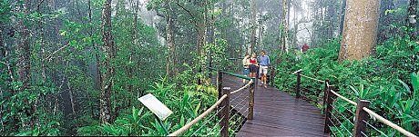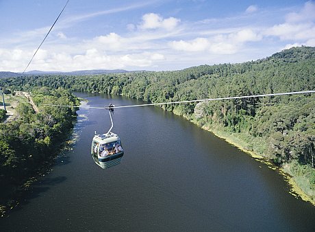 kyrail experience, spanning 7.5kms, includes time at two rainforest mid-stations where guests can alight from the cableway to learn more about this fascinating environment on Ranger guided boardwalk tours and at the Rainforest Interpretation Centre.