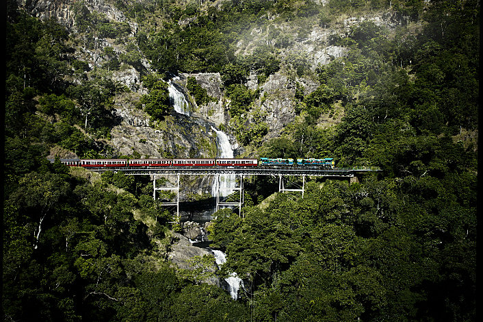 Kuranda Scenic Railway is the original scenic rail journey from Kuranda. This spectacular experience travels over bridges and through tunnels hand-made by North Queensland's pioneers over 100 years ago. Traversing the World Heritage listed rainforest of the Barron Gorge National Park this is one of the world's great railway journeys.