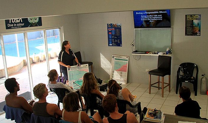 Theory gives you the knowledge required to dive in open water conditions. This takes the form of classroom presentations and lectures by the instructor in the comfort of our new air-conditioned classrooms.