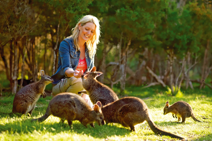Alighting from the train, we’ll travel onwards to the multi-award winning Moonlit Sanctuary Wildlife Conservation Park. Here, we enjoy a guided wildlife walk where we have the opportunity to meet and hand-feed many species of native Australian animals. Learn about iconic species such as kangaroos, koalas, emus & wallabies, as well as some of our lesser known favourites including quolls, owls, bandicoots & Tasmanian devils.
