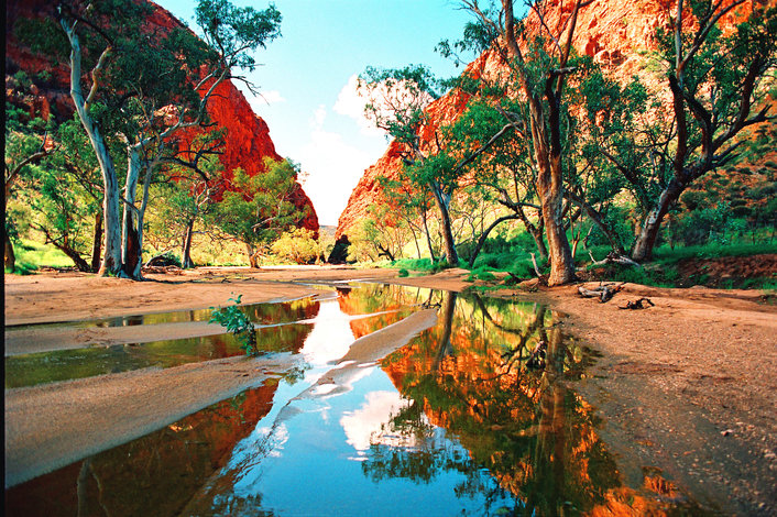 Experience the magnificent grandeur of the West MacDonnell Ranges. Marvel at towering fiery red walls set aglow by the desert sun as you drive along the ranges. We tour through these amazing ranges all day and stop at beautiful gorges and waterholes, where we can enjoy a refreshing swim in the warmer months.